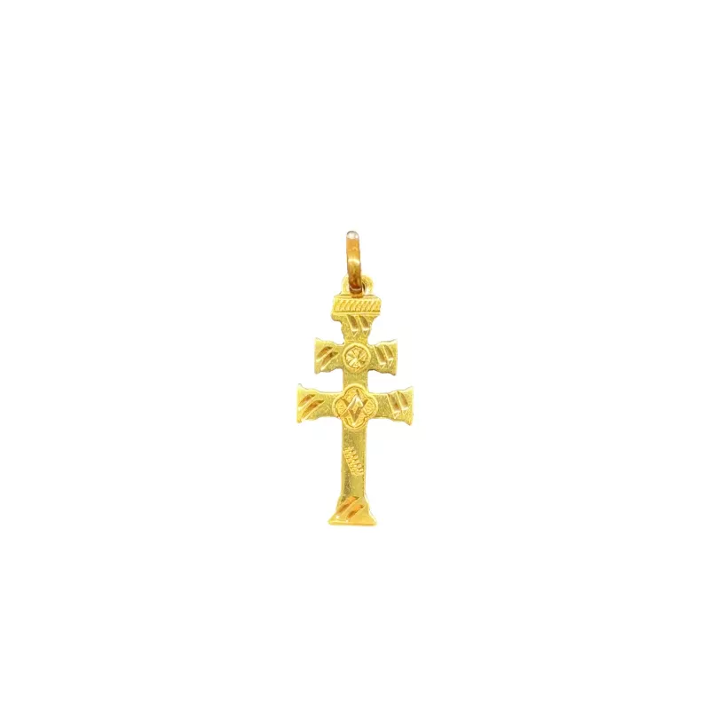 Cruz de Caravaca de plata con baño de oro hecha a mano. Fabricada en Caravaca de la Cruz.