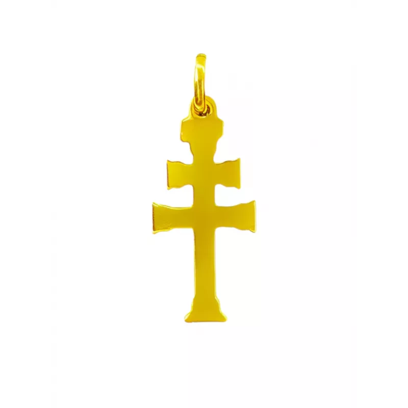 Cruz de Caravaca de plata con baño de oro hecha a mano y fabricada en Caravaca De la Cruz.