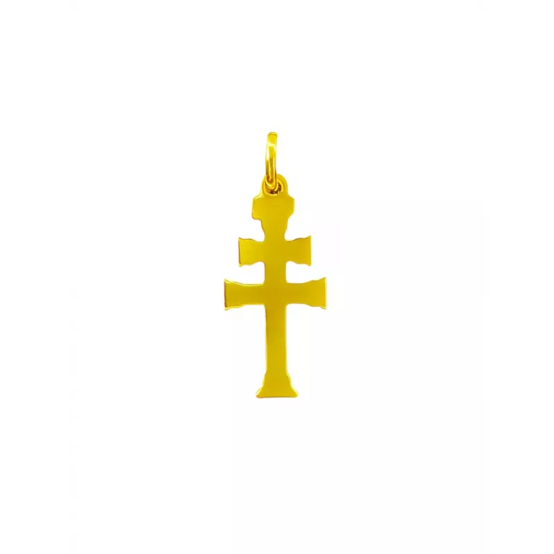 Cruz de Caravaca de plata con baño de oro, hecha a mano y fabricada en Caravaca de la Cruz.