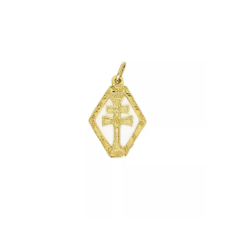 Cruz de Caravaca de Oro con un rombo exterior.
