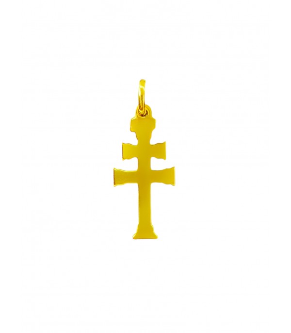Cruz de Caravaca de plata con baño de oro, hecha a mano y fabricada en Caravaca de la Cruz.