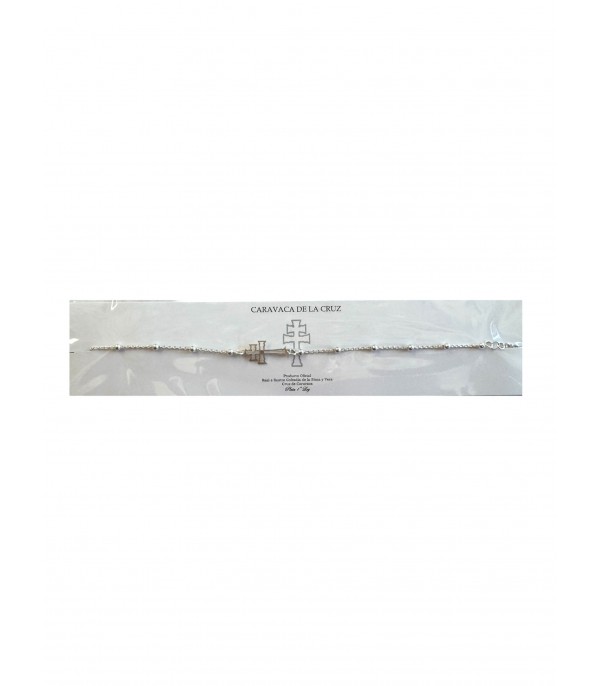 Pulsera de bolas en plata de ley con Cruz de Caravaca – Producto Oficial