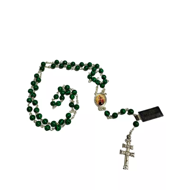 Rosario de Piedra Malaquita con Cruz de Caravaca